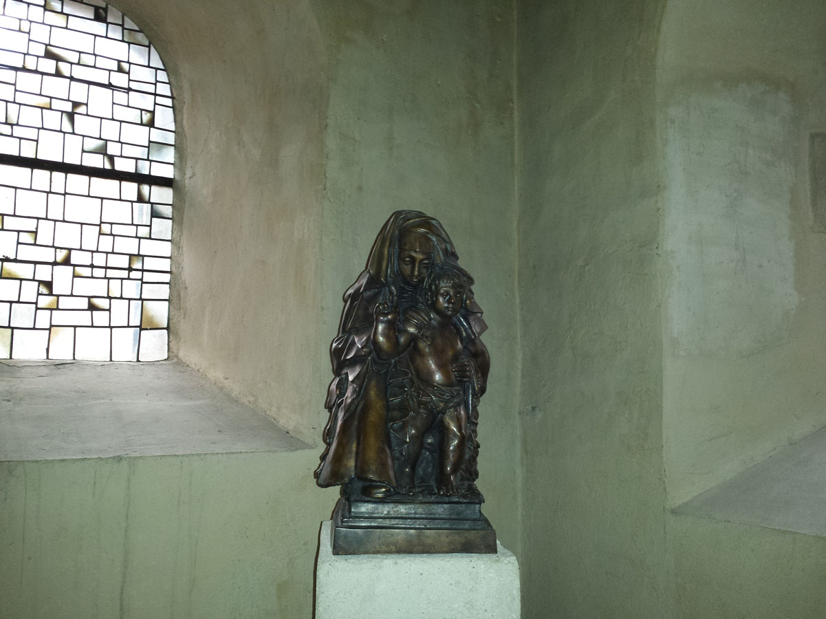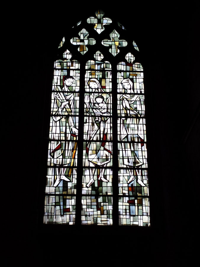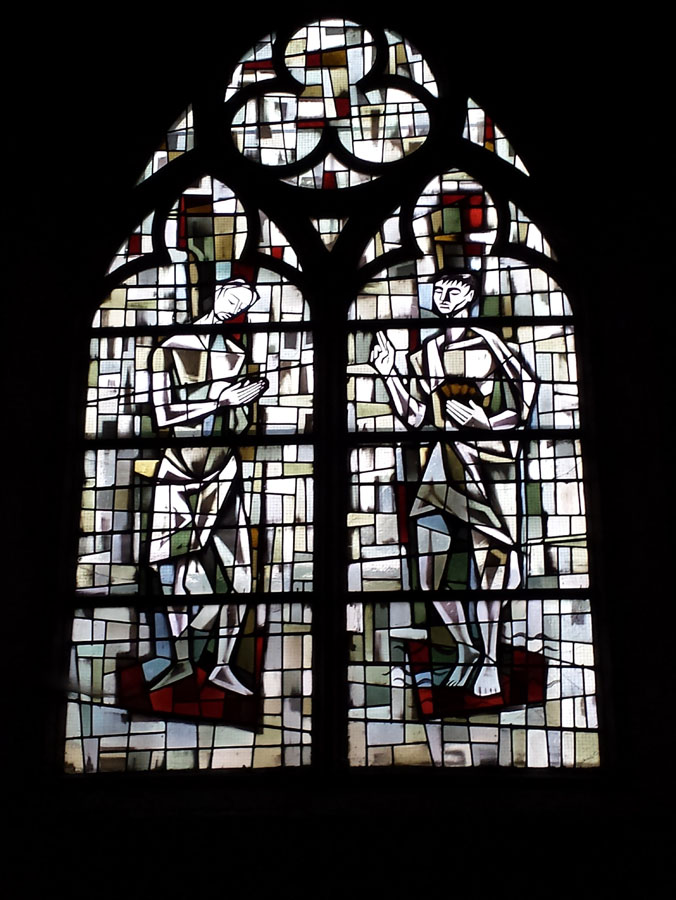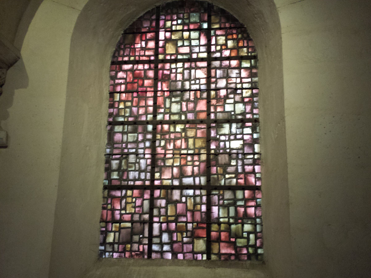 De beaux vitraux d’une sobriété toute moderne; au fond, près du chevet, des chapelles qui rayonnent autour du chœur rappelle une époque plus ancienne encore; des statues du XIIe siècle.